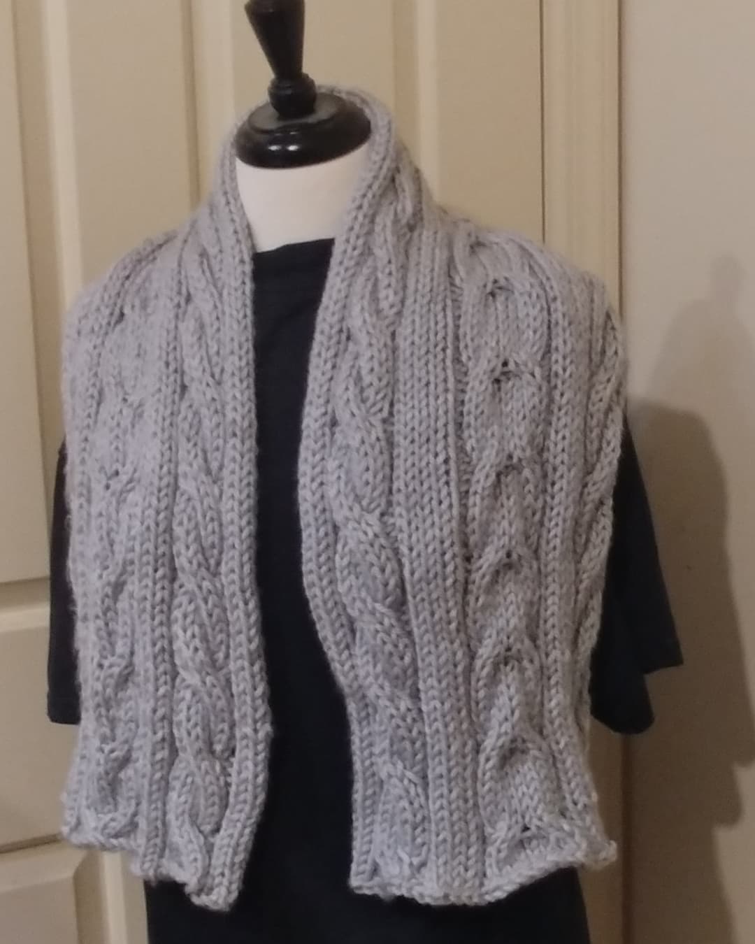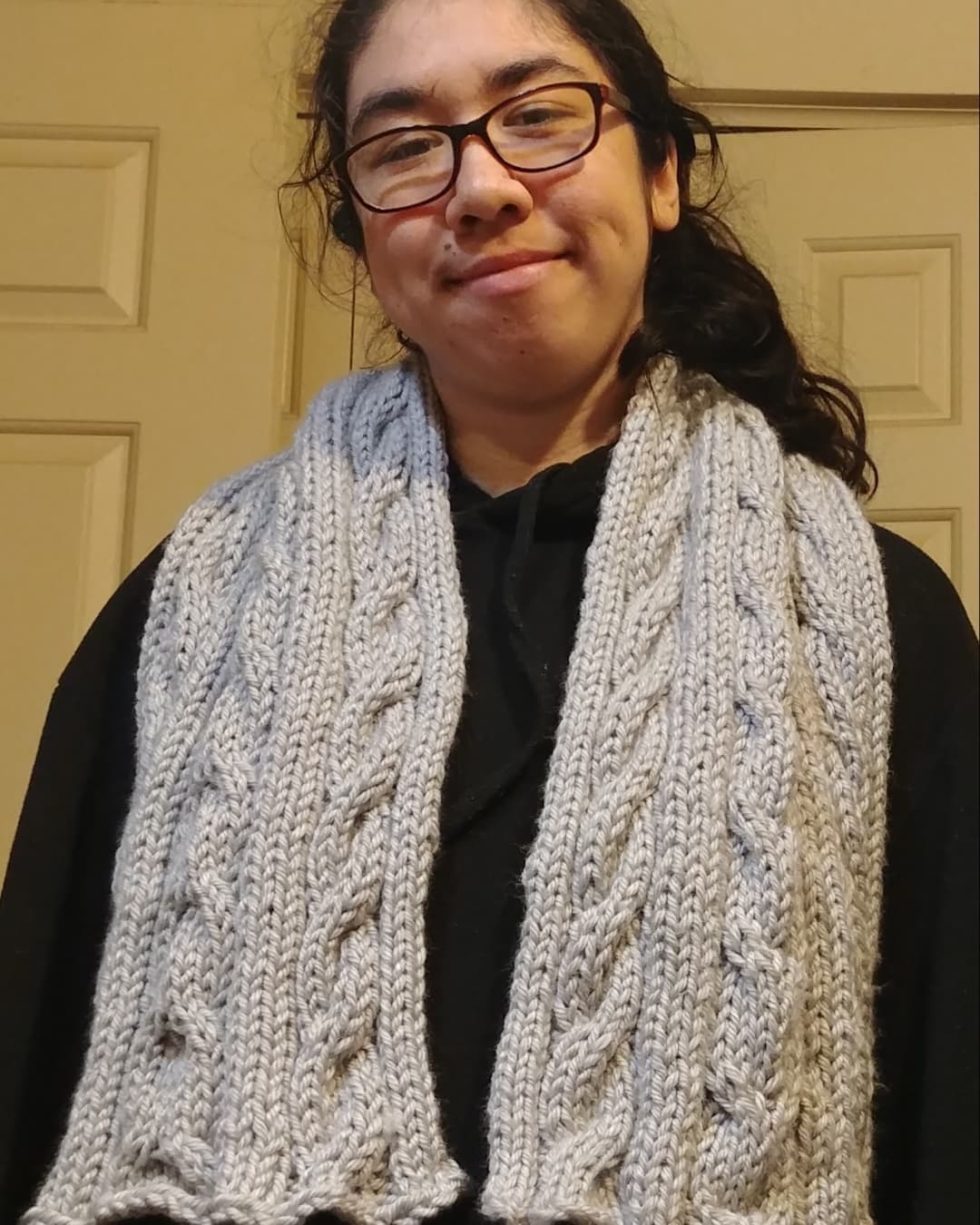 Triple cable scarf is a cable knit scarf featuring three cable patterns. This scarf is soft and warm, perfect for those cold weather days.